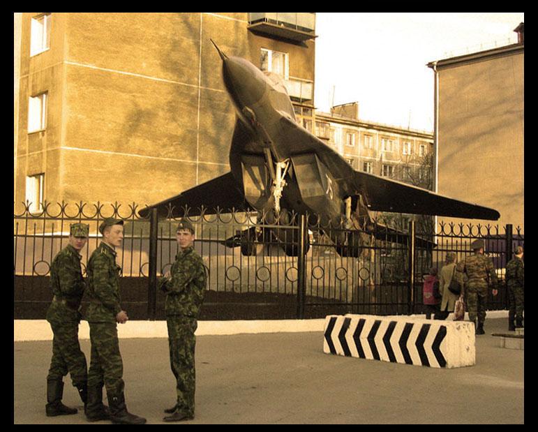 Разместили курс по ротам в громадном трёхэтажном здании, бывших казармах юнкерского училища[1], угловой конфигурации. Моя, вторая рота, на втором этаже. Ещё несколько подобных зданий окантовывают буквой “П” большой плац. Недалеко столовая, хозпостройки, котельная, КПП. Офицерско-преподавательский состав размещён вблизи учебных корпусов, примерно в километре от наших казарм. Несколько дальше санчасть и караулка. Всё это соединено брусчаткой окантованной очень урожайными на пух тополями. Много красочной наглядной агитации на авиационную тематику. Все урны из разрезанных авиабомб малого калибра. Детские качели в офицерском городке из подвесных топливных баков, эдакие алюминиевые ракето-торпеды с вырезом под детское сиденье. Все сооружения и дороги прижаты вплотную к аэродрому. На крыше нашей, угловой казармы, горит мощный красный фонарь осевой линии взлётно-посадочной полосы и все садящиеся и взлетающие самолёты ревут, почти касаясь крыши выпущенными или ещё не убранными шасси. Так казалось в первые дни. Страху не было но рёв движков впечатлял. Ночью реже, а днём эта музыка звучала каждые пять-десять минут. Со временем перестал даже голову задирать, привык. И на сон не влияло.