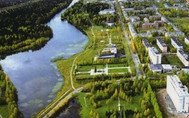 Справа г.Мирный, слева оз.Плесцы или Плесецкое. На переднем плане мемориалы погибшим.