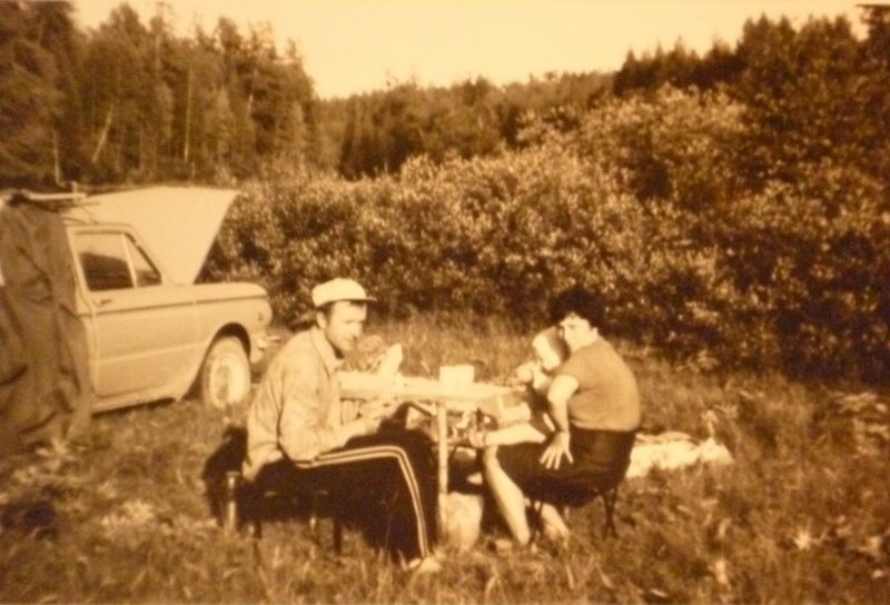 В то же лето поехали на выходные на рыбалку на реку Емца, примерно за сорок километров от дома, вчетвером, всем семейством. У нас к этому времени уже была хорошая польская трёхместная палатка. Отлично порыбачил, Таня с Леной и карапуз позагарали, покормили комариков. Ни души вокруг. Часа в четыре ночи собрали манатки и двинули назад. Разгоняю машину преодолеть крутой и длинный, метров двести подъём в овраге, промытом дождевыми ручьями. На самом верху, как говорится на излёте, в последний момент, успеваю заметить торчащий из травы острый валун и тут же машина слегка вздрагивает от жёсткого удара. Оборачиваюсь и в свете белой ночи вижу появившуюся на земле непрерывную чёрную ленту шириной сантиметра три. В голове мгновенно всё просчиталось и на автомате продолжаю давить на газ, чтобы как можно ближе подъехать к людям и прикидываю, когда закончится масло дабы не запороть мотор.