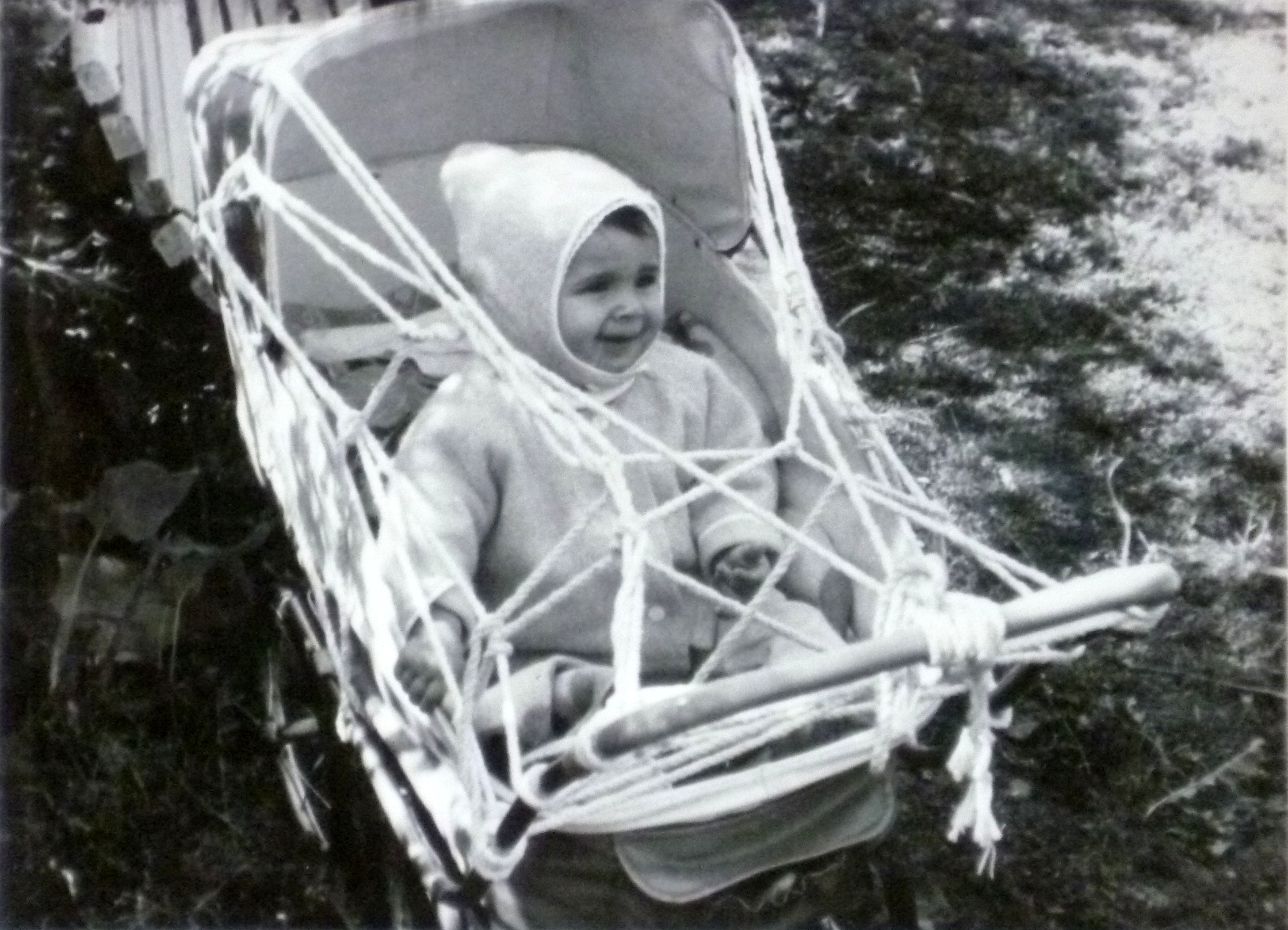 Увидел, как действует напалм. Приезжаю из лагерей и не узнаю таткину коляску, она вся опутана сверху веревками. Оказывается Таня уже начала вставать на ножки и активно раскачивать коляску. Вот изобретательный папа и нашел простое решение проблемы.