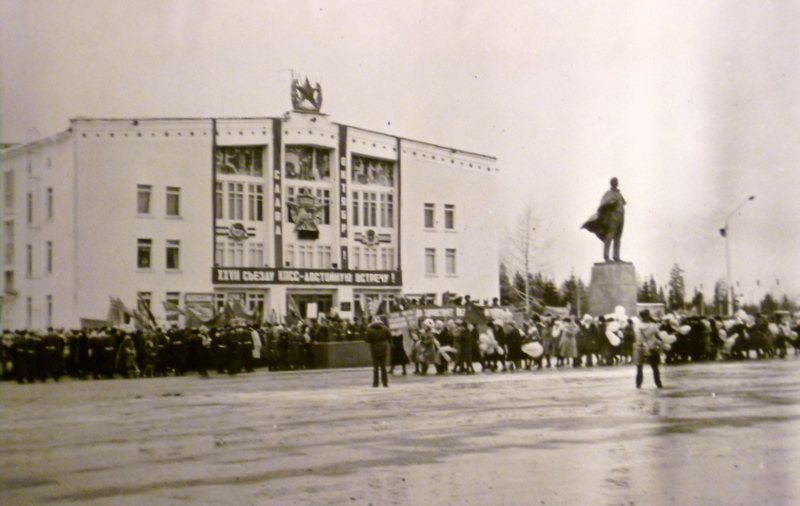 Дом Офицеров. Мимо трибуны и Идола демонстрирует что-то колонна НИИ “Новатор” с моей Леной внутри колонны.