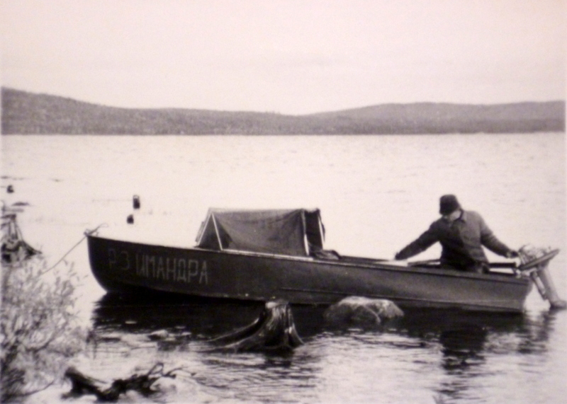 Утром следующего дня впятером, т.е. с Айной, усаживаемся в “Казанку” знакомого егеря и часа три идём под “Ветерком-8” по заливам Имандры. Правильнее будет сказать по системе озёр. А там где они явно выглядят как заливы, то называются лахтами. Вода, вода и крутые заросшие берега - гривы, по местному. Наконец упёрлись в какую-то гриву и началась выгрузка. Очень много барахла и продуктов. Только из оружия моя двустволка и пятизарядный автомат МЦ21-12. Егерь объяснил, как найти его избушку, расположенную по ту сторону гривы. Рассказал, где у него уже две недели стоят две сети и попросил их снять и простирать. Дал для этого пачку стирального порошка и обещание вернуться за нами через неделю.