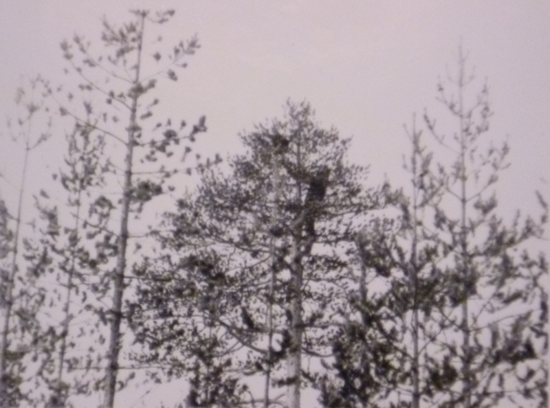 Допёрли своё барахло до избушки. Красотища с гривы открылась пред взором! От землянки, она наполовину, одной стенкой, врезана в склон, до воды не более тридцати метров. Хорошие нары с матрацами, вся посуда, громадный котёл и даже новая надувная лодка. И обустраиваться не надо. Осмотрелись, поужинали и спать. Утром, уже свет в окне, Айна запросилась на двор. И тут же, почти от двери, начала лаять. МС говорит мне: Возьми ружьё, там что-то есть. Выхожу и вижу, в двадцати шагах от избушки на вершине сосны сидит глухарь и рассматривает шумную собаку. Я его, не мешкая снимаю, но он не долетает до земли, застревает в ветках. Выходят отцы и поздравляют меня. А надо собаку. Нашли на крыше небольшую лестницу, и я залез на дерево и палкой стряхнул добычу.