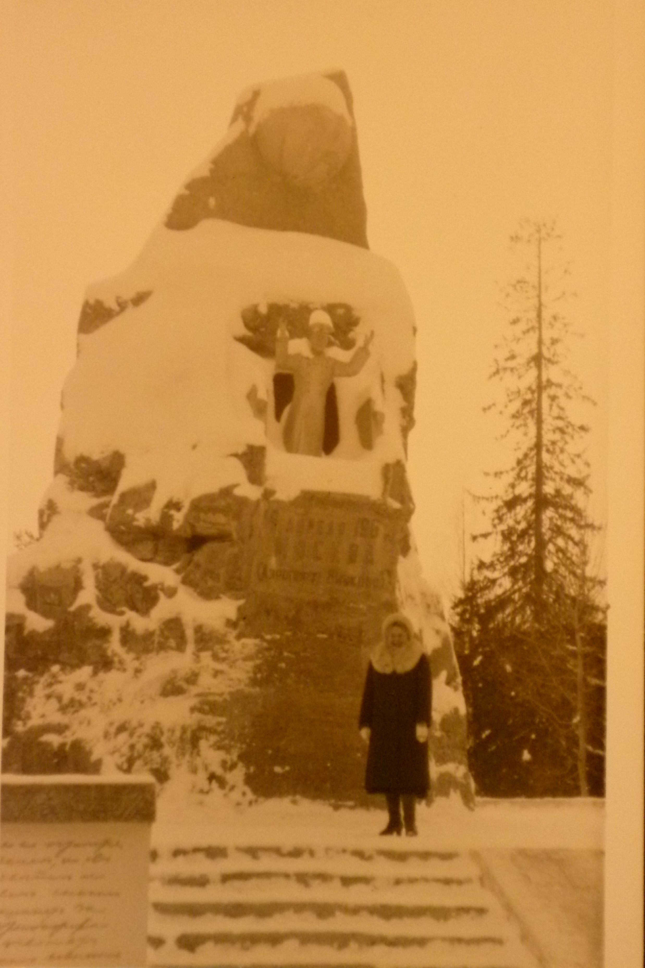 Валя не может сдержать смех около «Пленный из бункера» - памятника Юрию Гагарину выходящему из самолета.